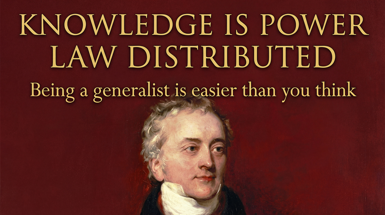 Once you accept this framework, you see that learning becomes much more about curation rather than exhaustively studying all that has been published. It is the via negativa — choosing not to read a vast majority of writing so that you can instead learn a vast majority of knowledge. Thus, the barrier to becoming a modern Thomas Young is no longer cognitive capacity, nor is it the "impossibility" of the expanding universe of knowledge. The barrier is the discipline to ignore the noise of the 99.9999% in favor of the signal of the 0.0001%, and the patience to master those root nodes before attempting to climb the branches. The library of the generalist is small, but it is heavy.
